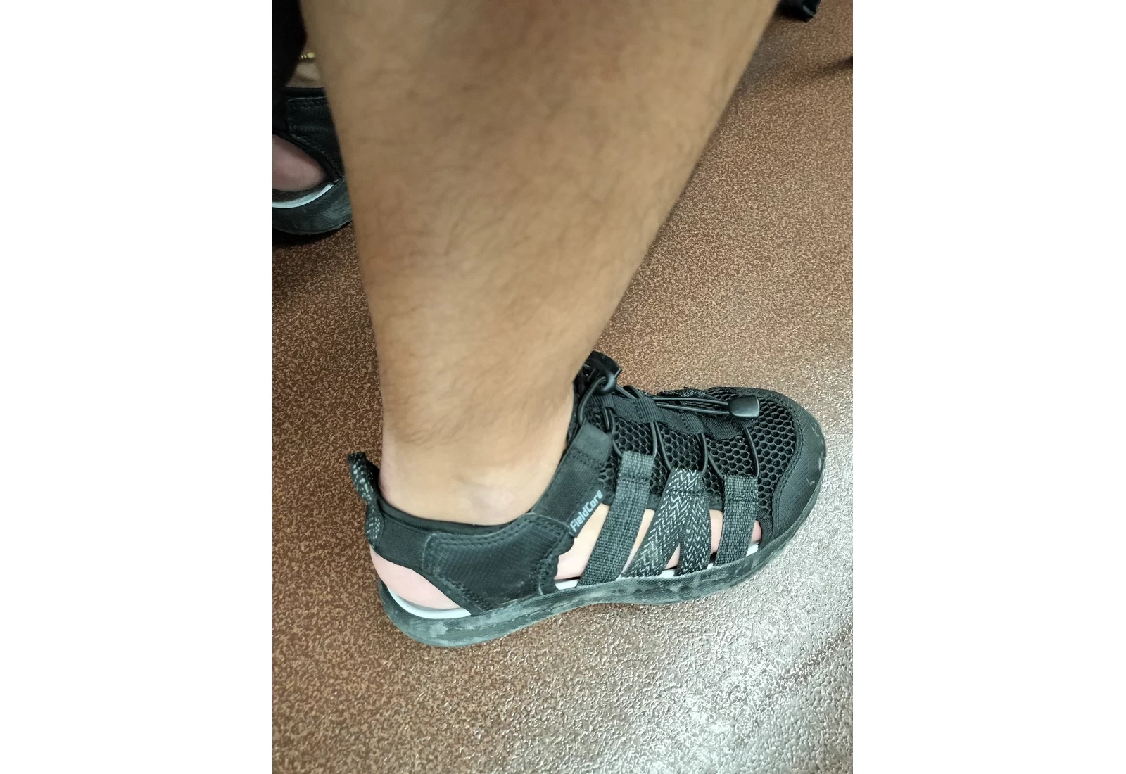 或許因為是在沖繩,許多人會選擇如照片中那樣的水陸兩用鞋,不過要特別注意,例如在「Buggy Voltage(越野卡丁車)」這項設施中,即使只是陪同乘坐,也無法入內體驗。建議出發前務必確認鞋款是否符合規定,以免掃興。
