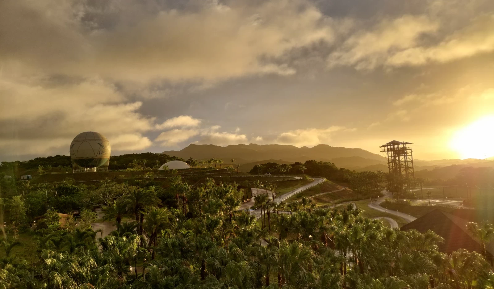 這樣的景色,是都市型主題樂園中難以體驗的。白天陽光映照下的翠綠森林生機盎然,而最推薦的時刻,莫過於傍晚時分——夕陽柔和的光線灑落樹梢,染上一片金橙色的浪漫,展現出只有沖繩才能擁有的壯麗與感動。