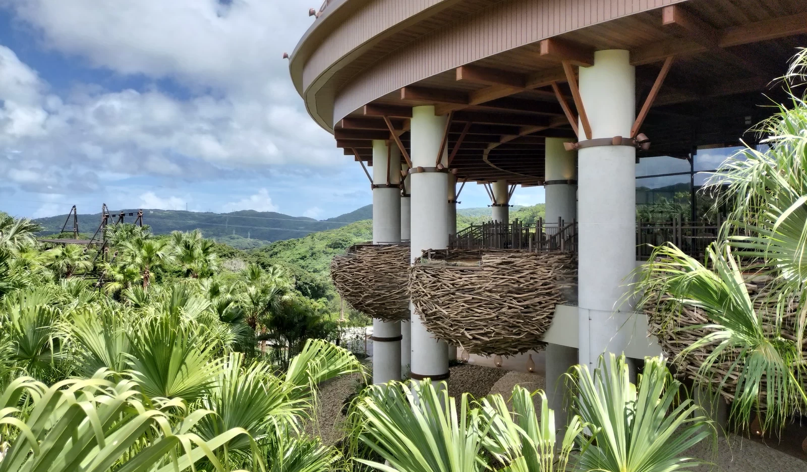 從「Infinity Terrace」可將整個JUNGLIA園區一覽無遺。眼前不僅有園內的壯麗風景,遠方連綿的沖繩群山也盡收眼底,彷彿整片大地都成了「JUNGLIA沖繩」的一部分,壯闊得令人屏息。